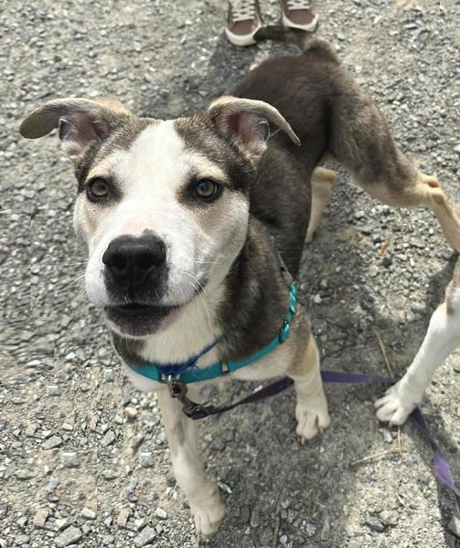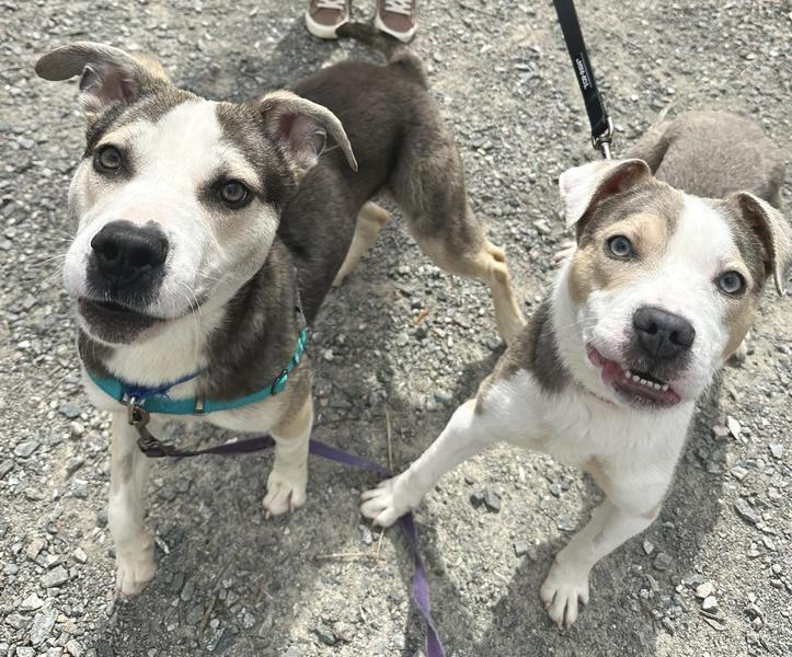 Notes: Pablo came to the shelter with Peter. We think they are Husky/Pit mix, 9 months old and weigh around 40 lbs. These boys have been neutered, chipped, and fully vetted. They were both a little nervous at first but have really come out of their shell. Both are very treat and praise motivated, and have been doing great working on their training and leash manners. They love other dogs and have a very gentle personality. They did not seem to mind the house cat either. They do not have to go to a home together.